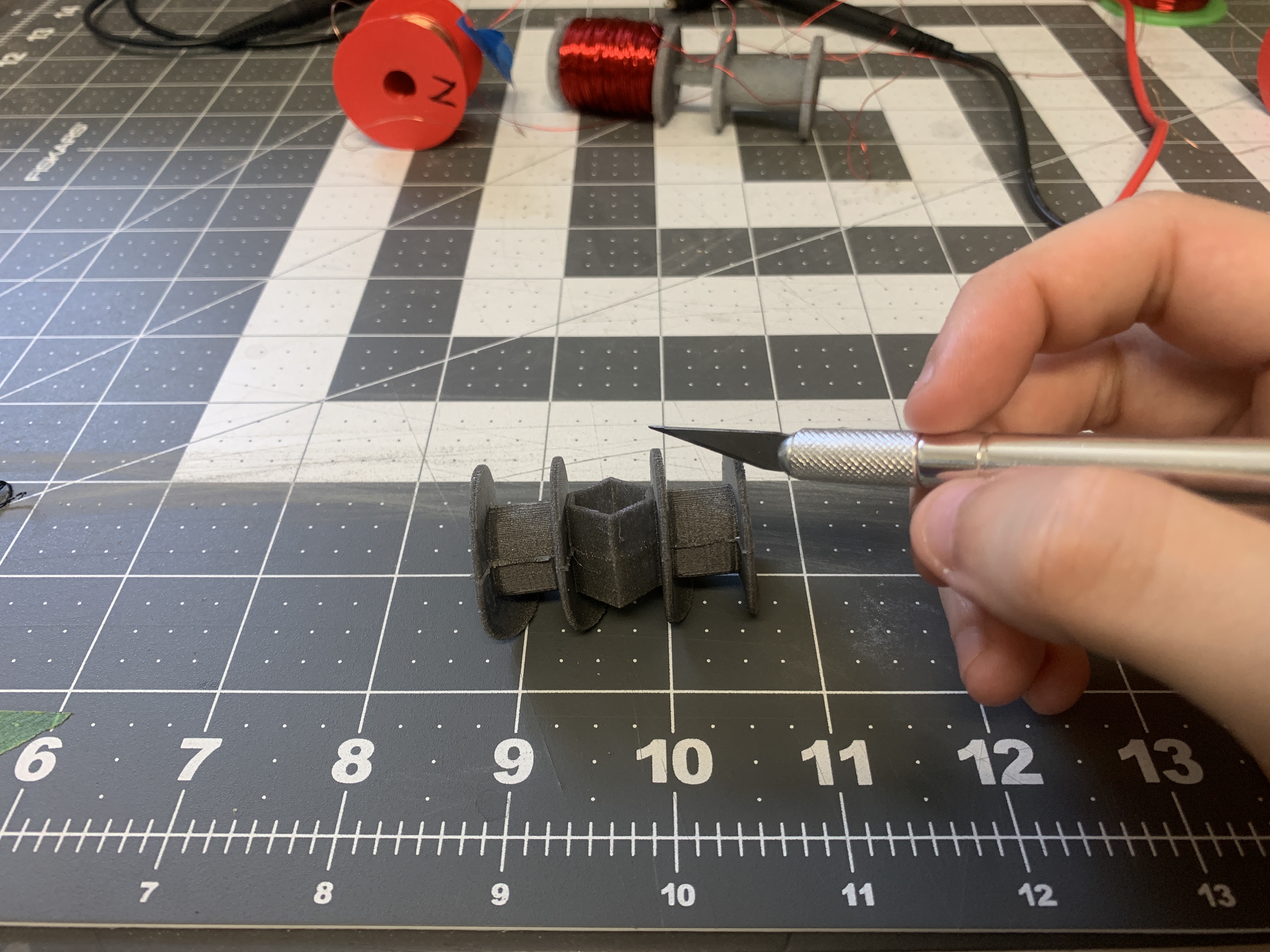 - 3D-printed molds with PLA, then cast silicone-iron mixtures.
